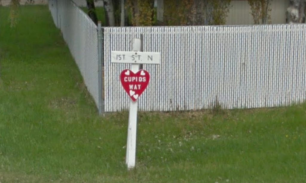 Girando per il villaggio si notano subito i piccoli cuori applicati alle vie (che in altro modo sarebbero le classiche 1Ave, 1 St N, ecc) che recitano: “Teddy Bear St” o “Cupids way” o ancora “Honey Moon ave” Un piccolo tocco di romanticismo che il Sindaco, Shelley Vallier ha voluto dare per, diciamolo, cercare di capitalizzare un po’ il nome di questa cittadina, dando il tema “amore” a quello che si riesce, tenendo conto che si tratta comunque di un villaggio di 50 persone. Anche l’antenna sulla torre dei pompieri ha un piccolo campionario di cuori, come d’altronde, non può mancare la “Love Community Hall” a tema cuoricioso.